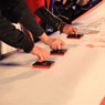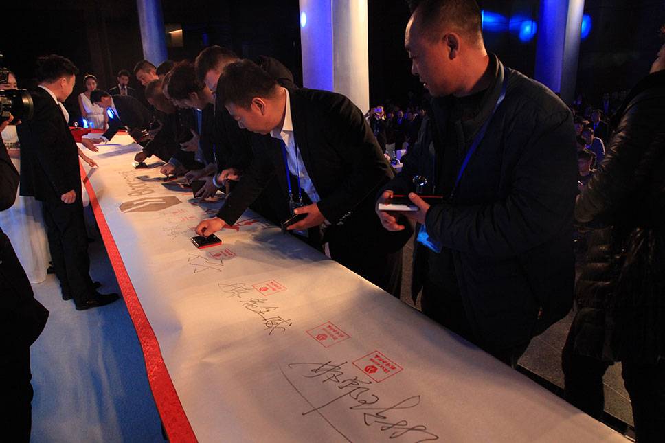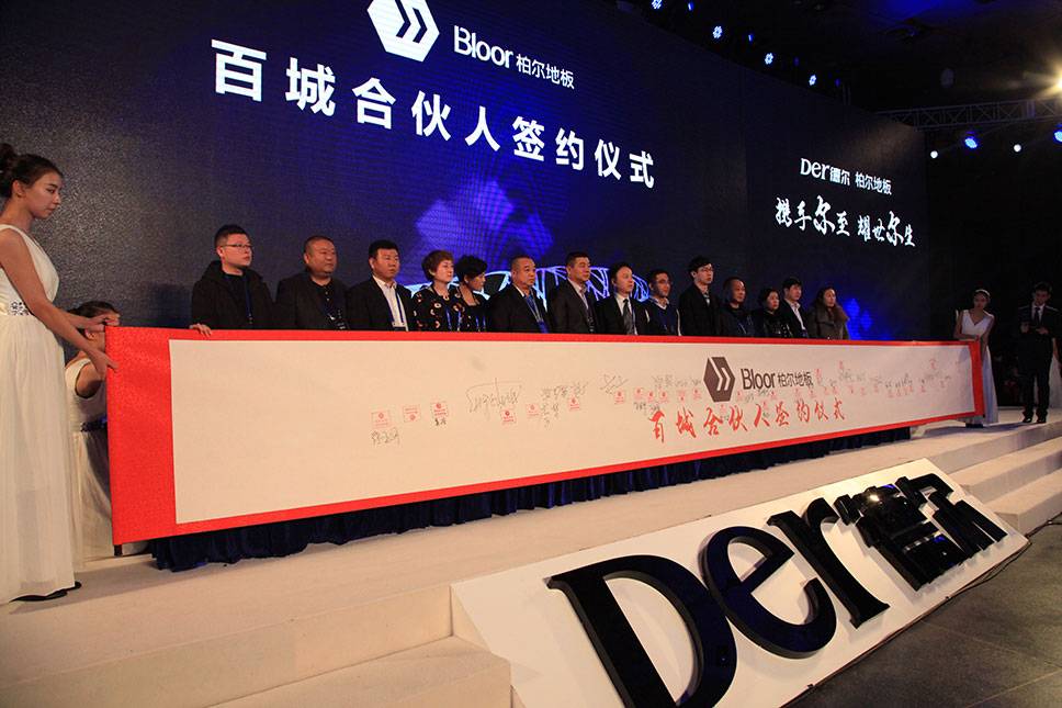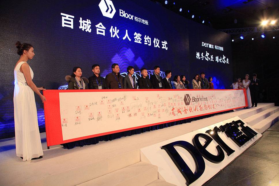 會上,柏爾地板新簽約的百余名經銷商在特制橫幅上簽上自己的大名,正式加入柏爾大家庭,與柏爾一起攜手共贏,共創美好未來!