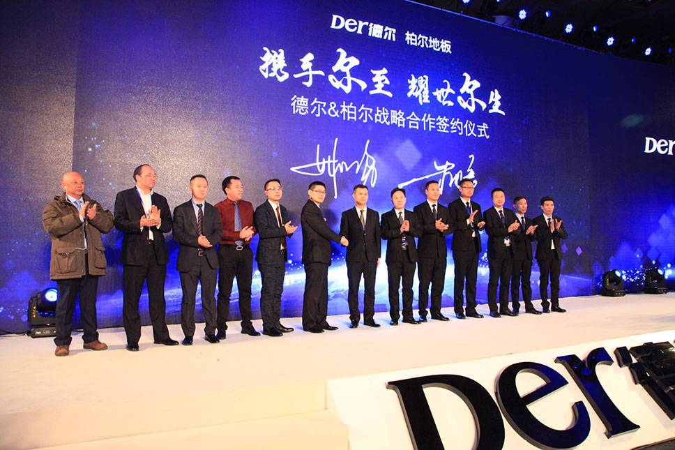 隨著大屏幕上朱總和姚總的簽名逐漸顯現出來,德爾&柏爾戰略合作正式簽約,未來雙方將整合共享彼此優勢資源,布局大地板產業之路。