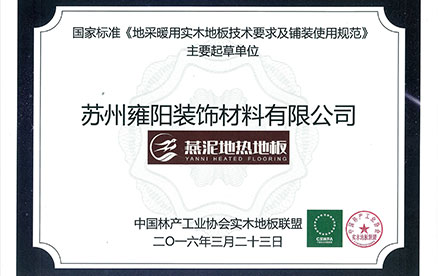 國家標準《地采暖用實木地板技術要求及鋪裝使用規范》主要起草單位;