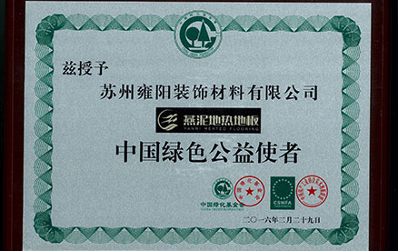 • 燕泥地板榮獲中國綠色公益使者稱號