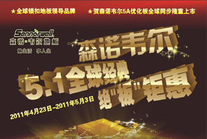森諾韋爾五一全球經典絕板火爆來襲 森諾韋爾地板在五一推出的“鉅惠”:凡進店即可獲得森諾韋爾精美禮品一份;100元優惠券限量送:若活動前到店內咨詢均可獲贈100元地板優惠券,送完即止,此優惠券可在本活動期間沖抵貨款。 <<點擊查看詳情