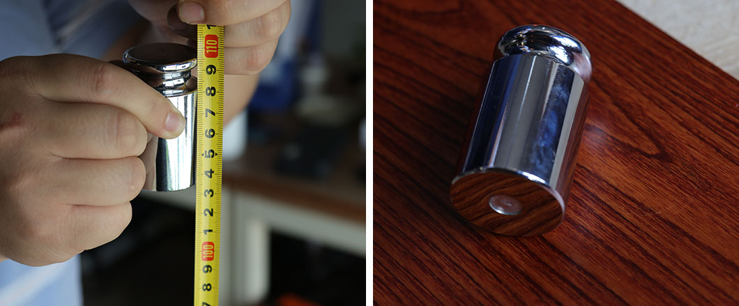 使用500g砝碼從1m以上高度釋放至地板表面,觀察地板形變,測試抗沖擊性能。1m高度沖擊下對地面產生了半圓弧的印記,深度較淺,幾乎看不見,地板表層硬度較高,基層結構緊密。