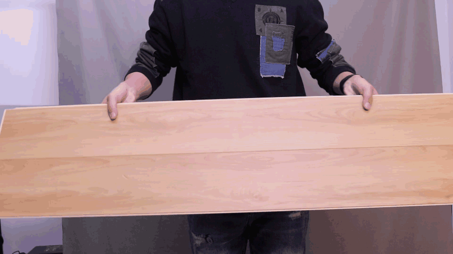 為了檢測(cè)鎖扣的牢固度,拿起拼接好的兩塊地板,離地60cm上下不停地?fù)u晃,地板完全沒(méi)有晃動(dòng)和松動(dòng)掉落的情況。