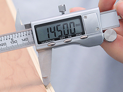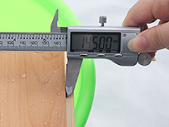 為了檢測(cè)肯帝亞超級(jí)地板的吸水厚度膨脹率,我們對(duì)地板進(jìn)行了水泡實(shí)驗(yàn)。實(shí)驗(yàn)開(kāi)始前,記錄地板的寬度為145mm.。