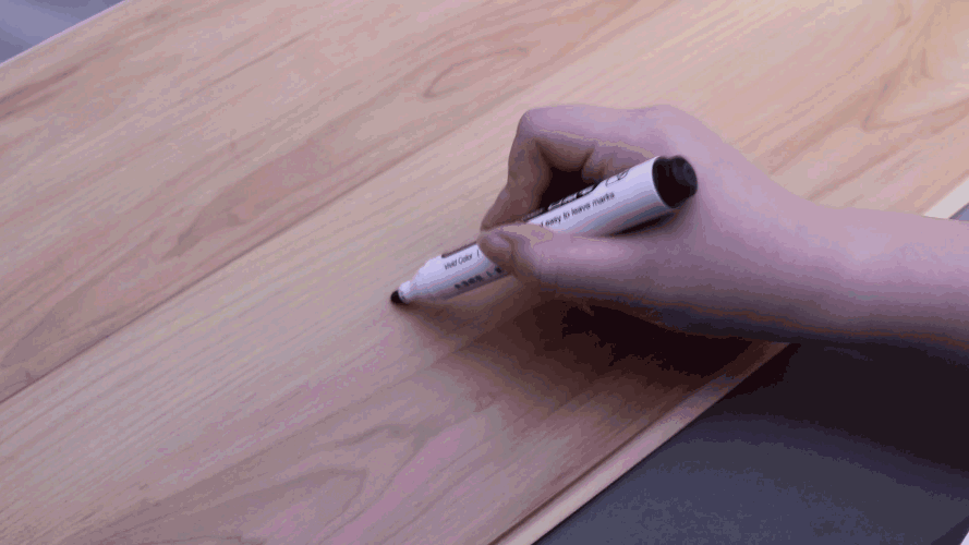 • 用水性筆在地板表面寫字,靜置5分鐘,用清潔海綿擦拭地板,表面字跡迅速被擦凈。
