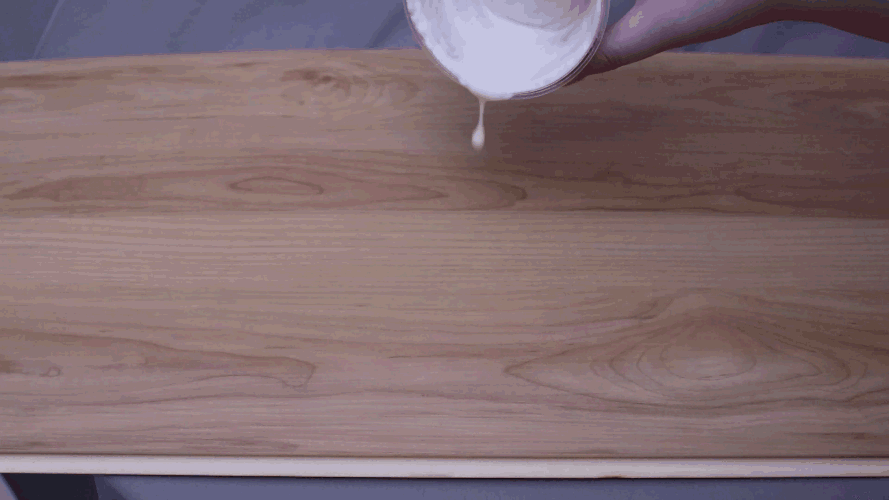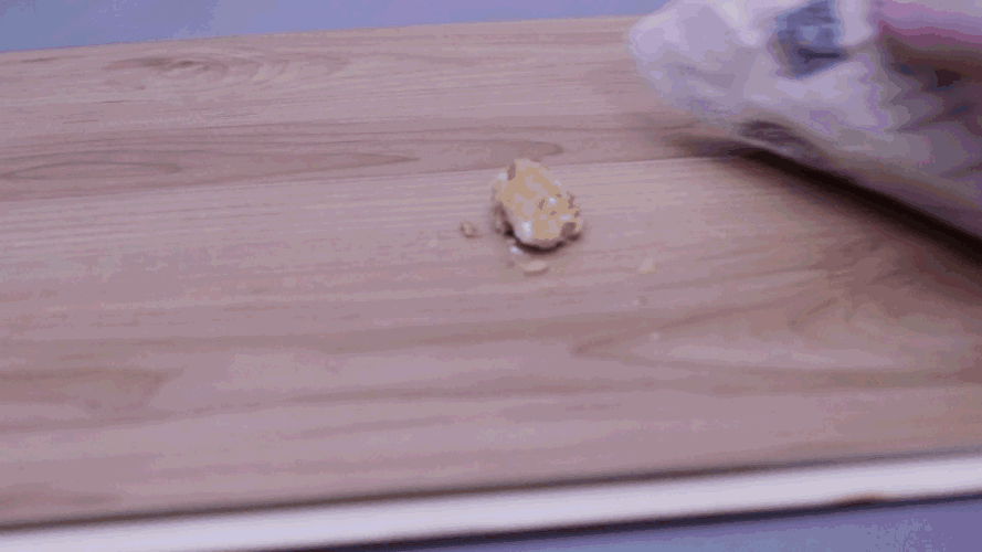 • 在地板拼接處倒上榴蓮芝士,3分鐘后用紙巾清潔地板,拼接處無(wú)任何殘留。