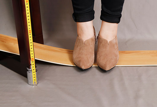 • 選擇500G的砝碼,從超級(jí)地板上空1.2米處呈自由落體,超級(jí)地板上未留下坑洞痕跡。據(jù)肯帝亞內(nèi)部質(zhì)量控制體系數(shù)據(jù)顯示,超級(jí)地板進(jìn)行了200000次腳感盲測(cè),其舒適度專為亞洲人足部設(shè)計(jì)。