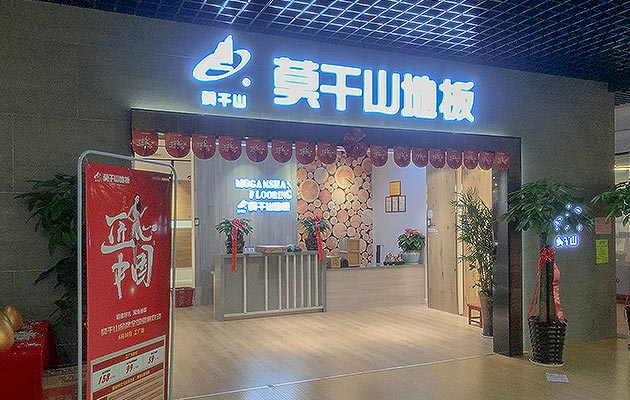 木板背面“莫干山地板”標識清晰可見,品牌調性立體凸顯。